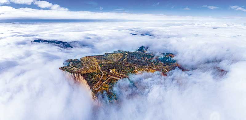 • 左權(quán)縣太行龍泉旅游區(qū)磅礴的云海漫過層林盡染的群山